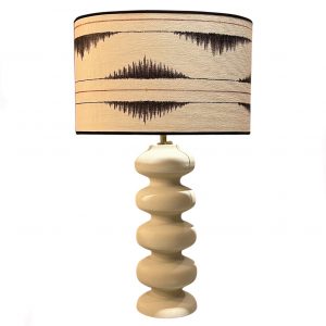 PANTALLA 45CM OVALADA DOBLE TEXTURA LINO BEIGE+ TERCIOPELO PETROL+ TELA RAYAS