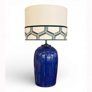 • CILINDRO 25CM DOBLE TEXTURA LINO BEIGE+TELA RAYAS AZULES+TERCIOPELO AZUL