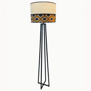 CILINDRO 45CM LINO BEIGE MÁS TELA MEDALLONES NAVY/OCRE+ TERCIOPELO
