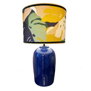 CILINDRO 35CM DOBLE TEXTURA LINO BEIGE+ TELA CÍRCULOS Y CUADRADOS AZULES GÜELL