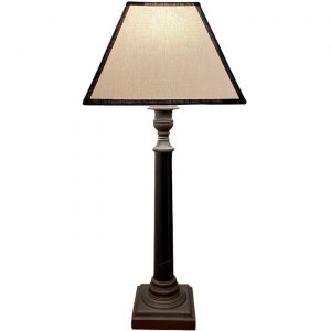 PANTALLA 25CM CUADRADA TRAPECIO LINO CINTAS NEGRAS