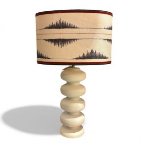 PANTALLA 35CM OVALADA LINO BEIGE TERCIOPELO NEGRO ARRIBA Y ABAJO+ TERCIOPELO CALDERA