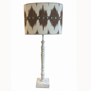 PANTALLA CILINDRO 20CM LINO BEIGE TERCIOPELOS CRUZADOS PETROL