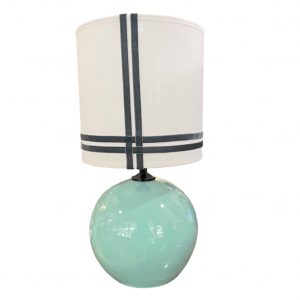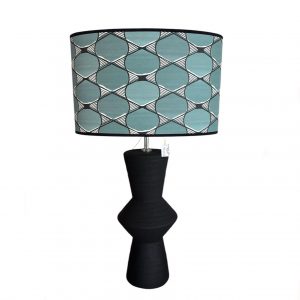 PANTALLA 45CM OVALADA DOBLE TEXTURA LINO BEIGE+ TERCIOPELO PETROL+ TELA RAYAS