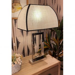 PANTALLA 35CM ELSA RECTANGULAR LINO TOSTADO CINTAS LINO NEGRO INTERIOR TRANSPARENTE