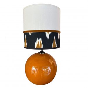 PANTALLA CILINDRO 20CM DOBLE TEXTURA LINO BEIGE +TEJIDO MEDALLONES + TERCIOPELO MOSTAZA