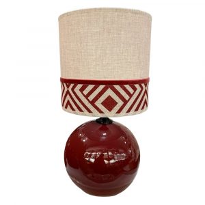 PANTALLA CILINDRO 20CM DOBLE TEXTURA LINO TOSTADO +TEJIDO GEOMÉTRICO GRANATE TALLER+ TERCIOPELO