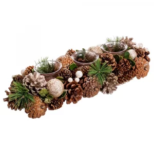CENTRO 4 PORTAVELAS REDONDO PIÑAS ACEBO 720840