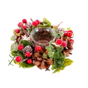 • CENTRO PORTAVELAS REDONDO PIÑAS ACEBO