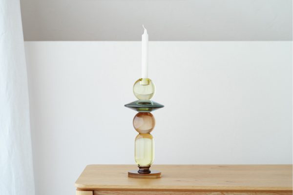 CANDELABRO BIEL REALIZADO EN CRISTAL. EN ESTA PIEZA SE COMBINAN EN LOS DISTINTOS VOLÚMENES LA TRANSPARENCIA DEL CRISTAL CON LOS TONOS AMARILLO ÁMBAR Y TURQUESACREANDO UN ELEMENTO DE DECORACIÓN PERFECTO PARA LLENAR DE LUZ CUALQUIER ESTANCIA. TAMAÑO ALTO. PIEZAS EN CRISTAL PULIDO COLOREADO.