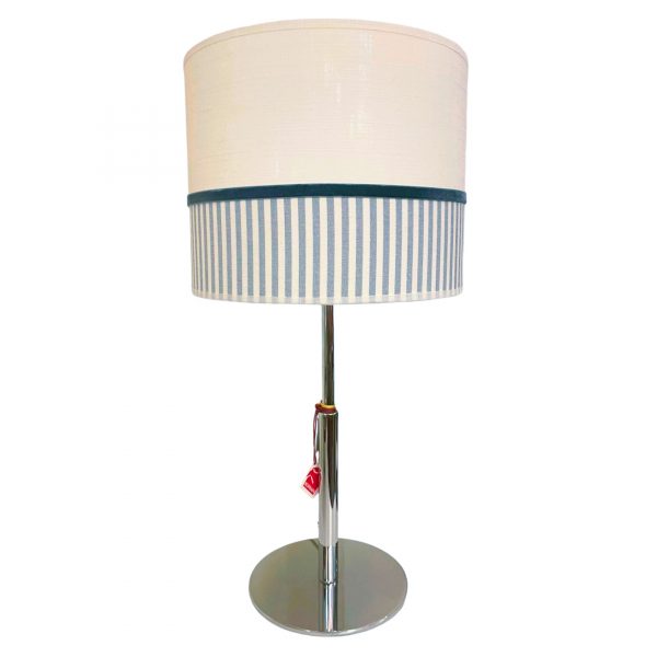 PANTALLA 25CM CILINDRO DOBLE TEXTURA LINO BEIGE+TELA RAYAS AZULES+TERCIOPELO AL TONO DE LA TELA 25X20CM