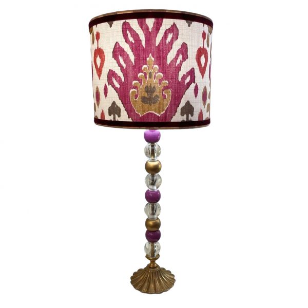 CILINDRO 25CM TEJIDO IKAT FUCSIA+ TERCIOPELO ARRIBA Y ABAJO FUCSIA