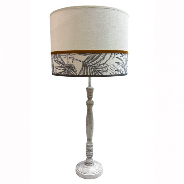 PANTALLA CILINDRO 30CM DOBLE TEXTURA TELA PALMAS + LINO BEIGE+ TERCIOPELO 30X22CM