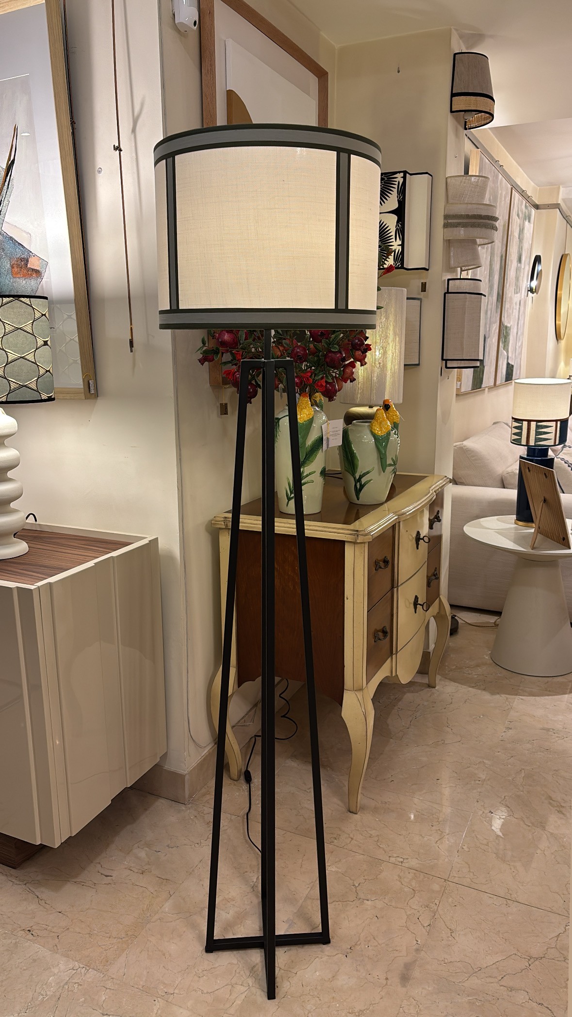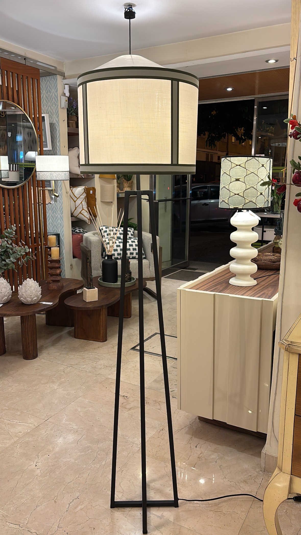 Cilindro de 40cm lino beige combinado con cintas de algodón en tonos verdes
