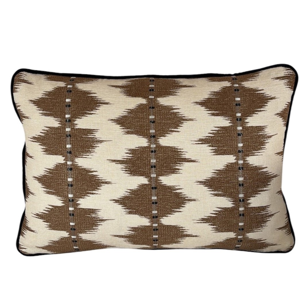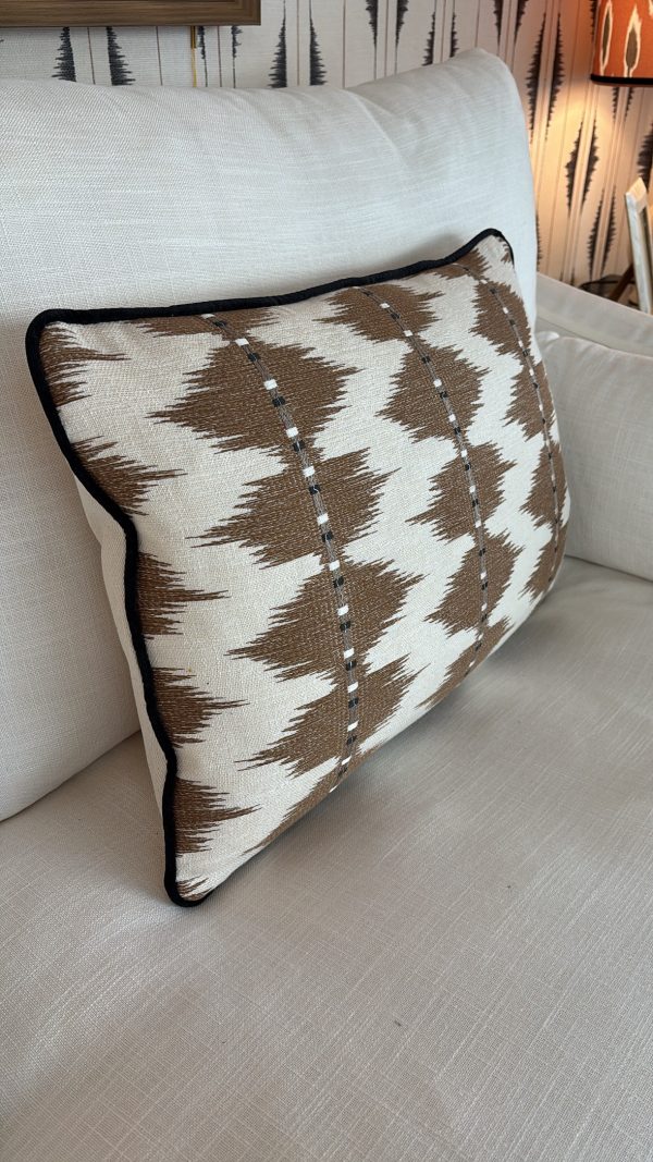 COJÍN CONFECCIONADO DELANTERA CON TELA MYRTHUS DE COLEFAX Y TRASERA EN COLOR CREMA AL TONO DEL FONDO DE LA TELA MYRTHUS.