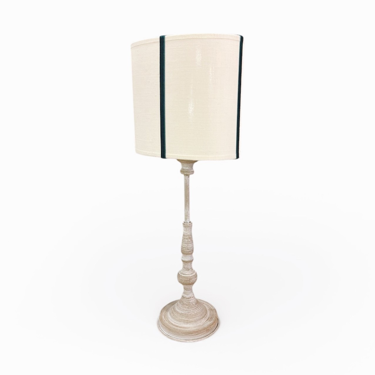 PANTALLA OVALADA 20 CM LINO BEIGE+ TIRAS TERCIOPELO PETROL