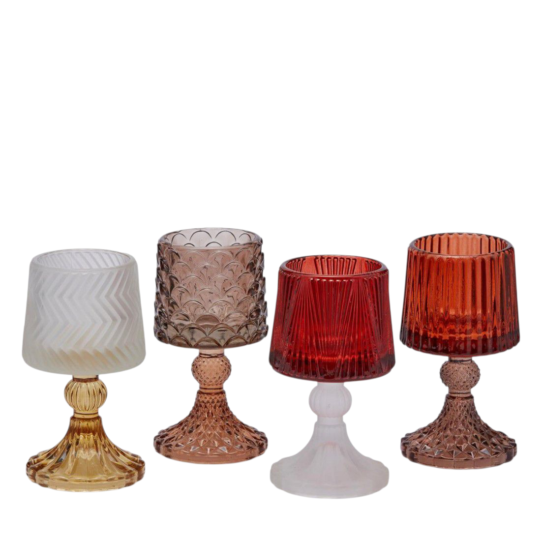 PORTAVELAS DE CRISTAL EN FORMA DE LAMPARITAS EN 4 MOTIVOS DISTINTOS.